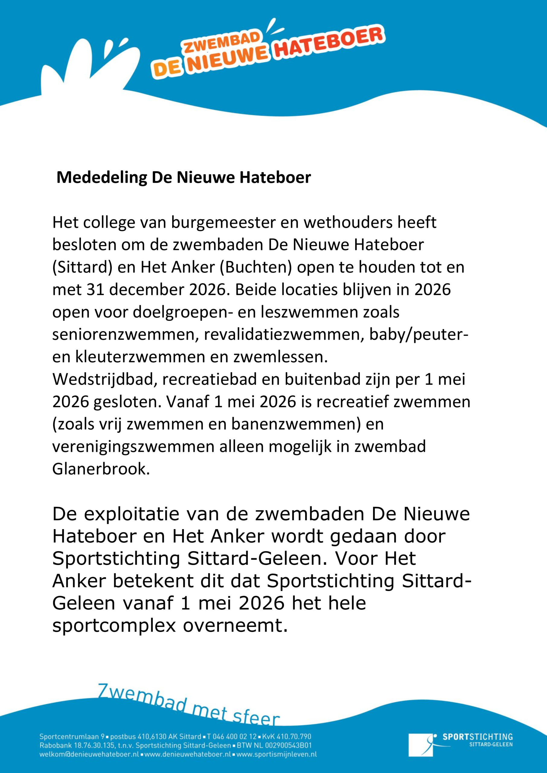 Zondag 15 februari t/m vrijdag 20 februari: zwembad gesloten.