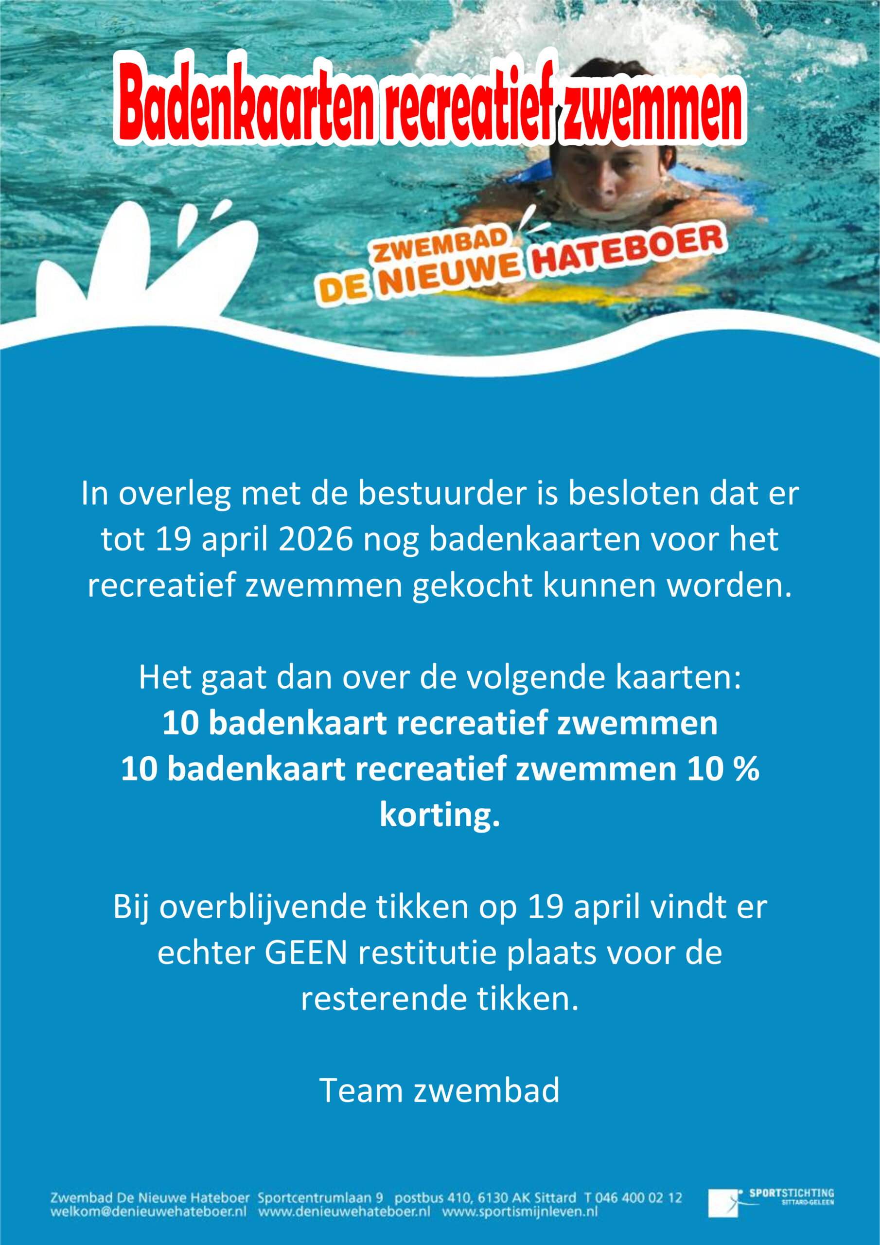 Om maandag 2 maart 2026 vervalt de beweegles Hydromove.